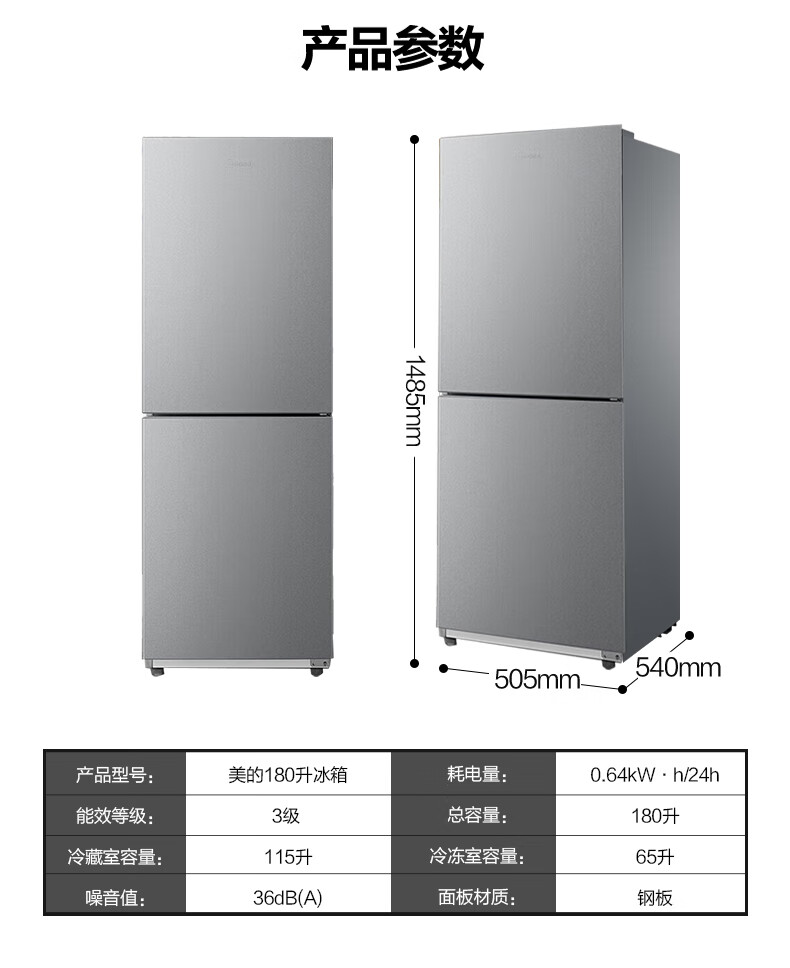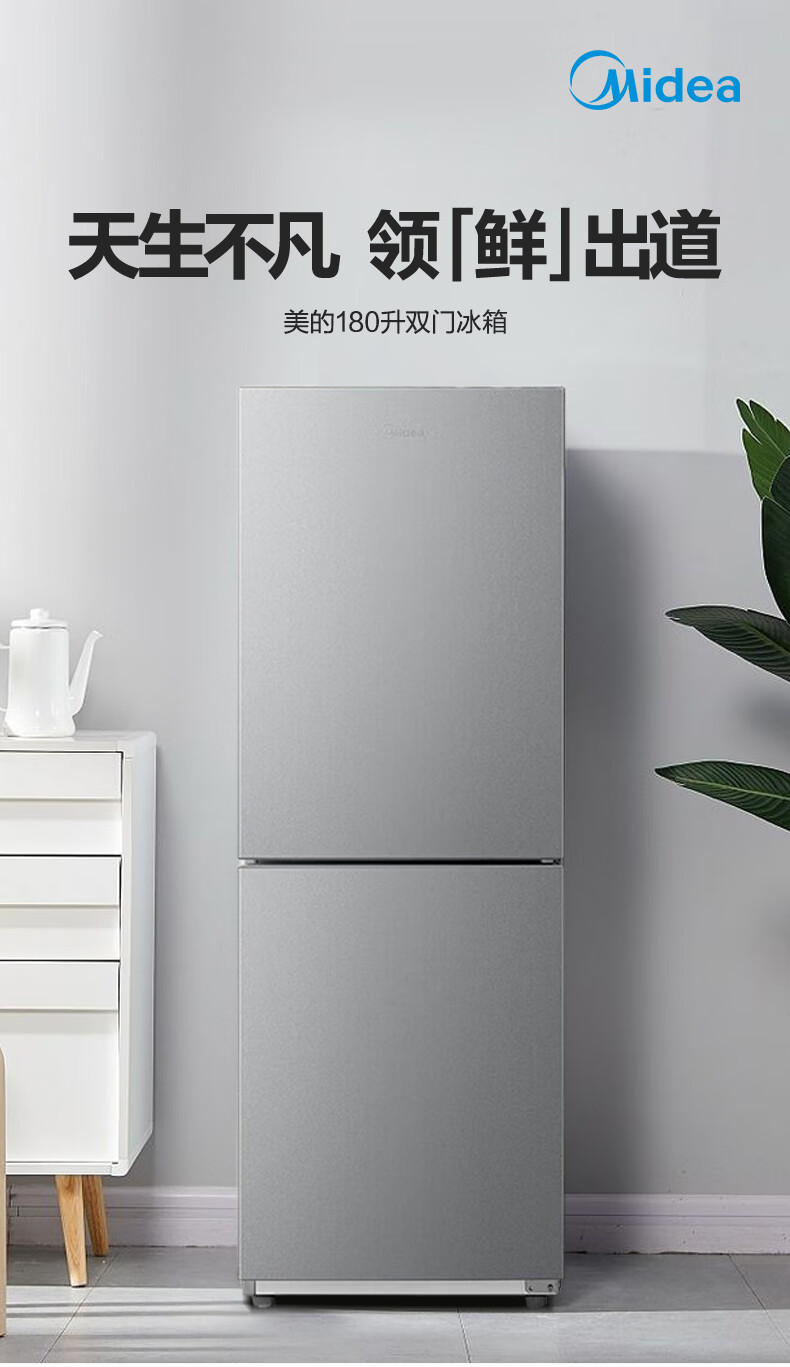 美的(Midea)180升双开门小型两门家用家电租房宿舍办公小户型节能低噪省电小冰箱国补以旧换新 钛钢灰