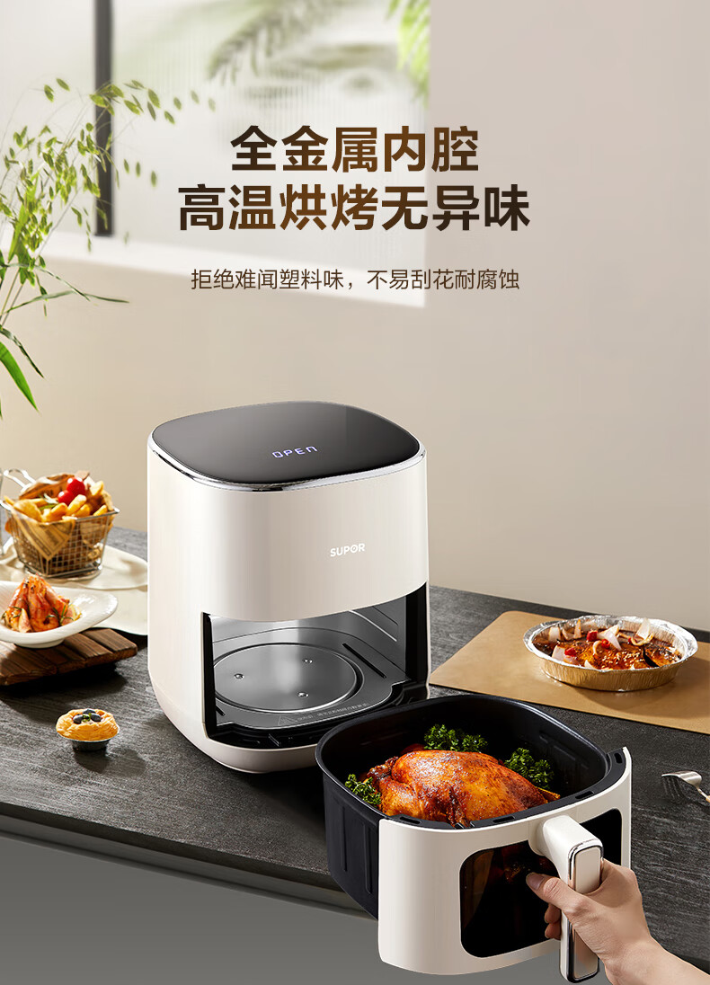 苏泊尔(SUPOR)空气炸锅 不用翻面 家用全自动 可视5L大容量 聚风环流多功能 炸烤炸一体免翻面炸锅KD50D882