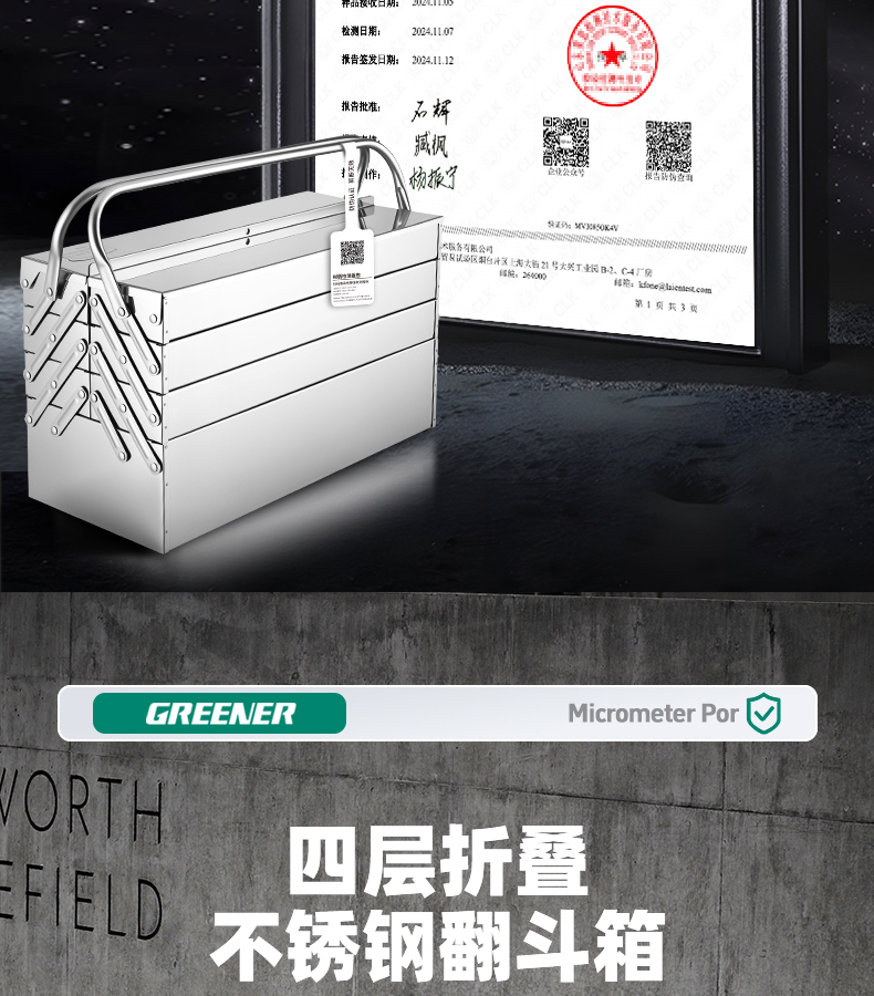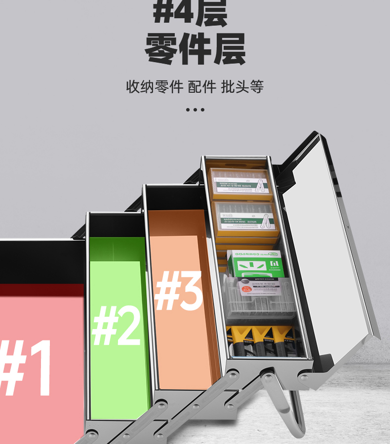 绿林不锈钢工具箱三层折叠家用加厚手提式五金工业级收纳盒多功能